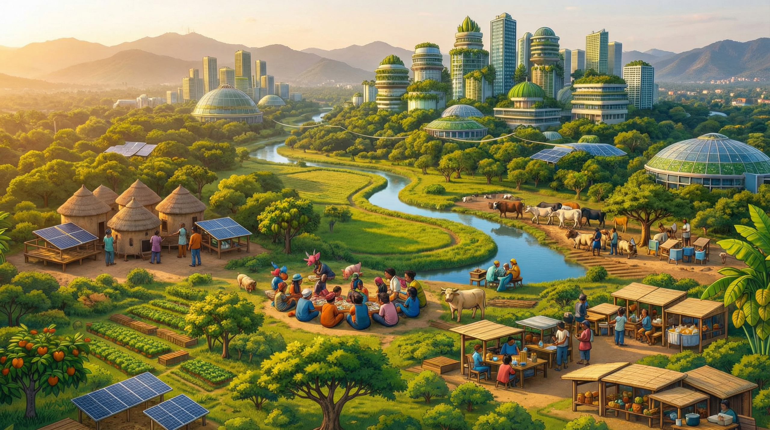 We learned to plan and develop our communities together. We now help each other; humans, animals, and plants.