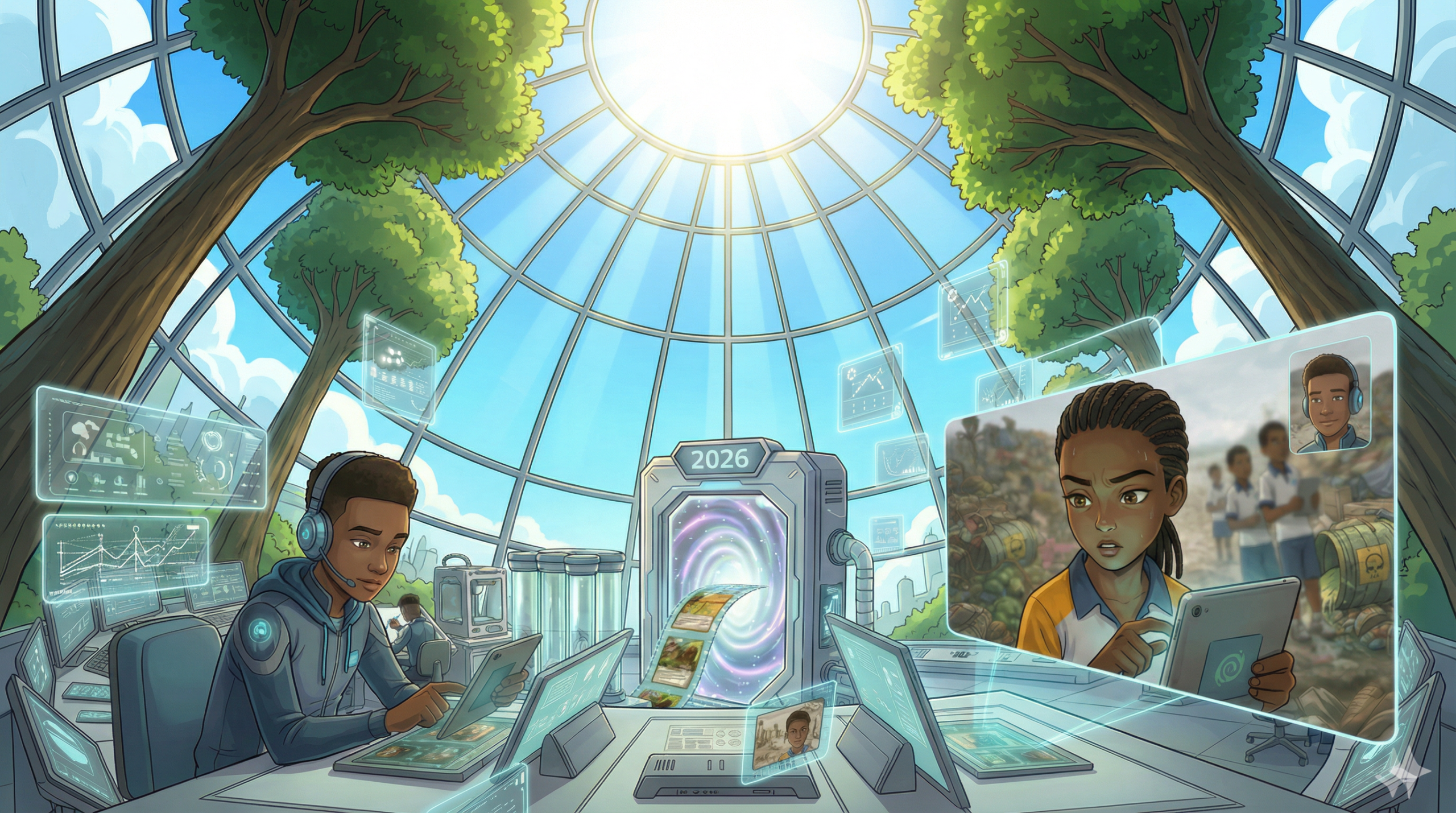 Designed as a bold, positive future agency storyworld grounded in solid science, field experience, advanced curricula, and respect for Indigenous knowledge, the comic is inspired by the Multifunctional Schools Network and the incredible dedicated team around Dr. Lisa Elena Fuchs at CGIAR under the Alliance of Bioversity International and CIAT.