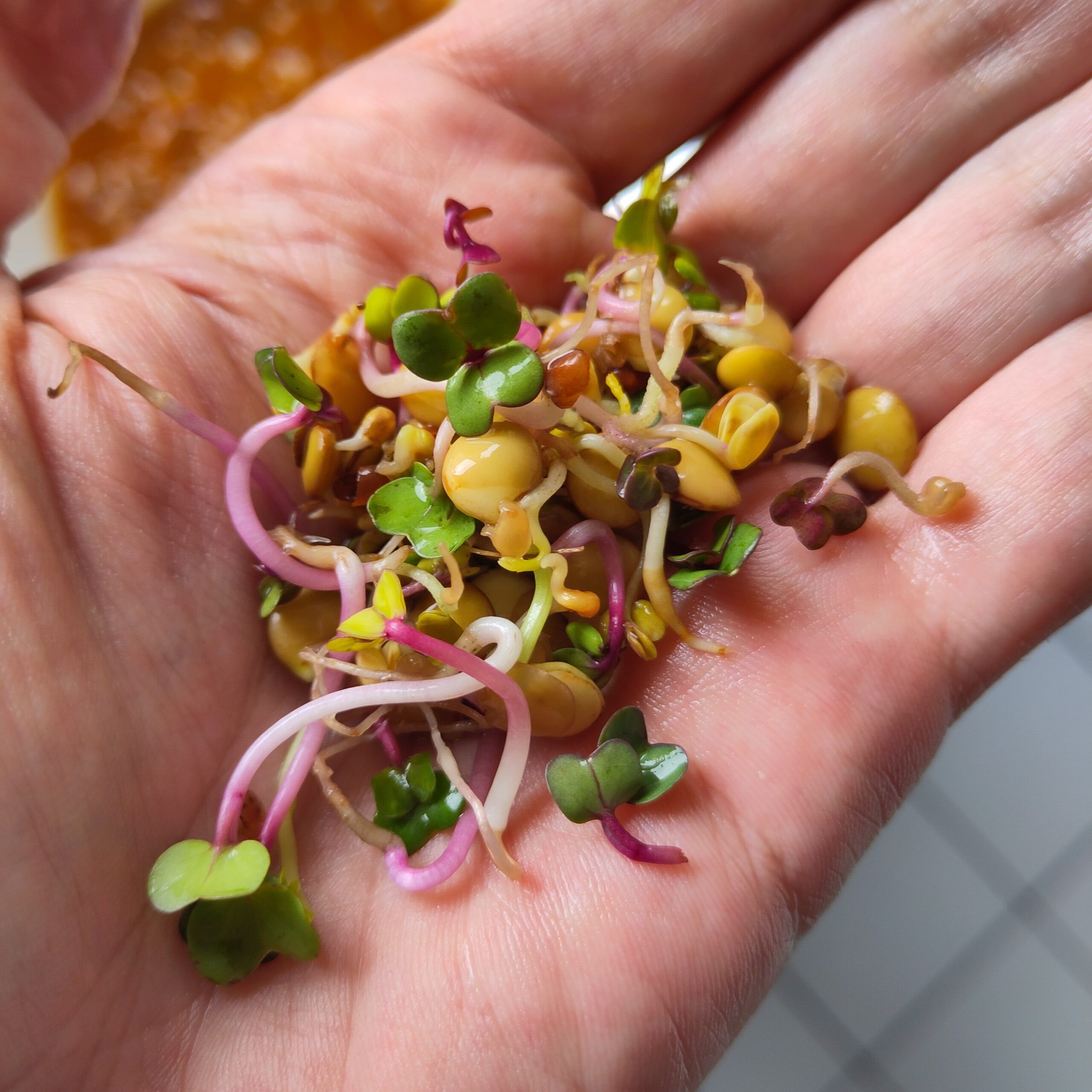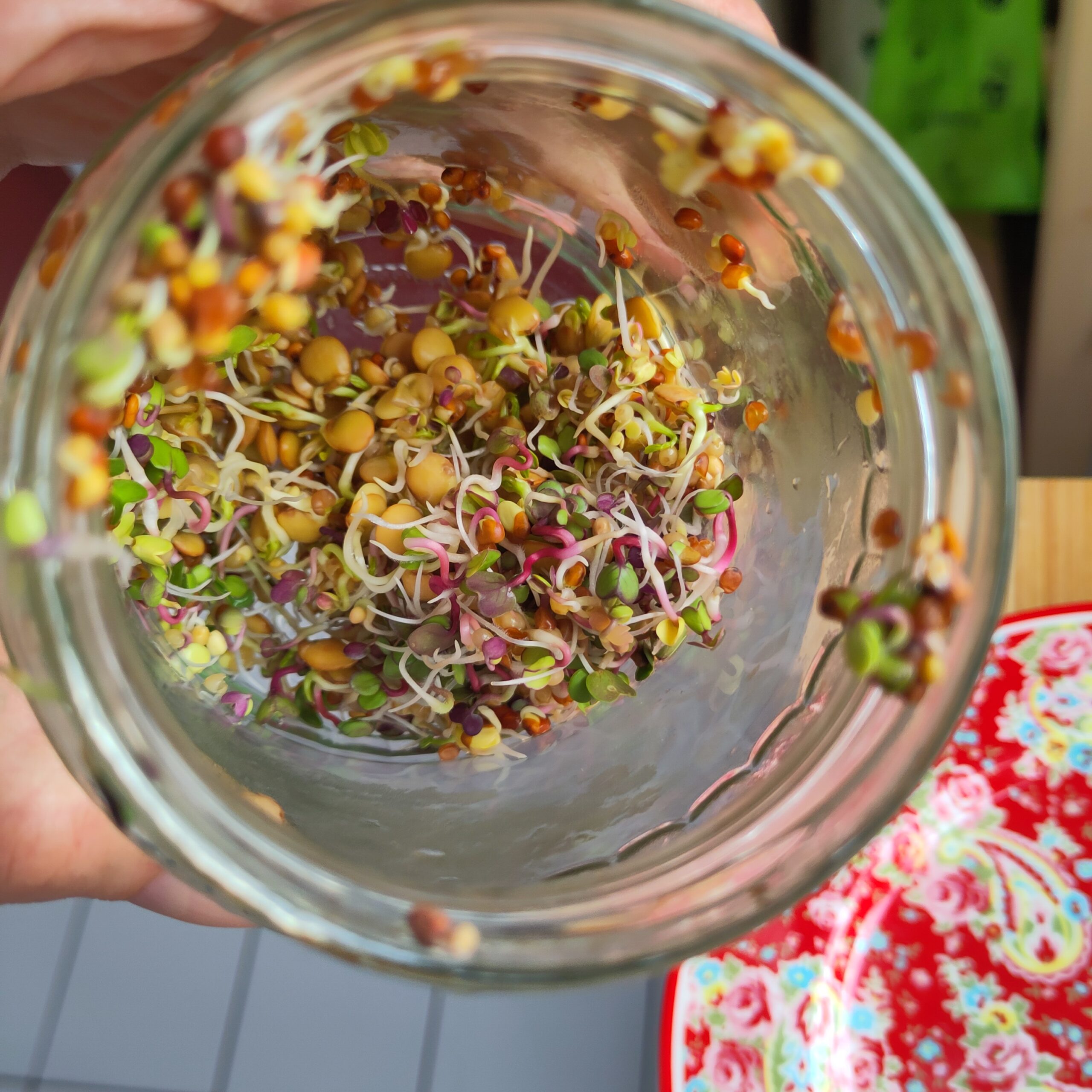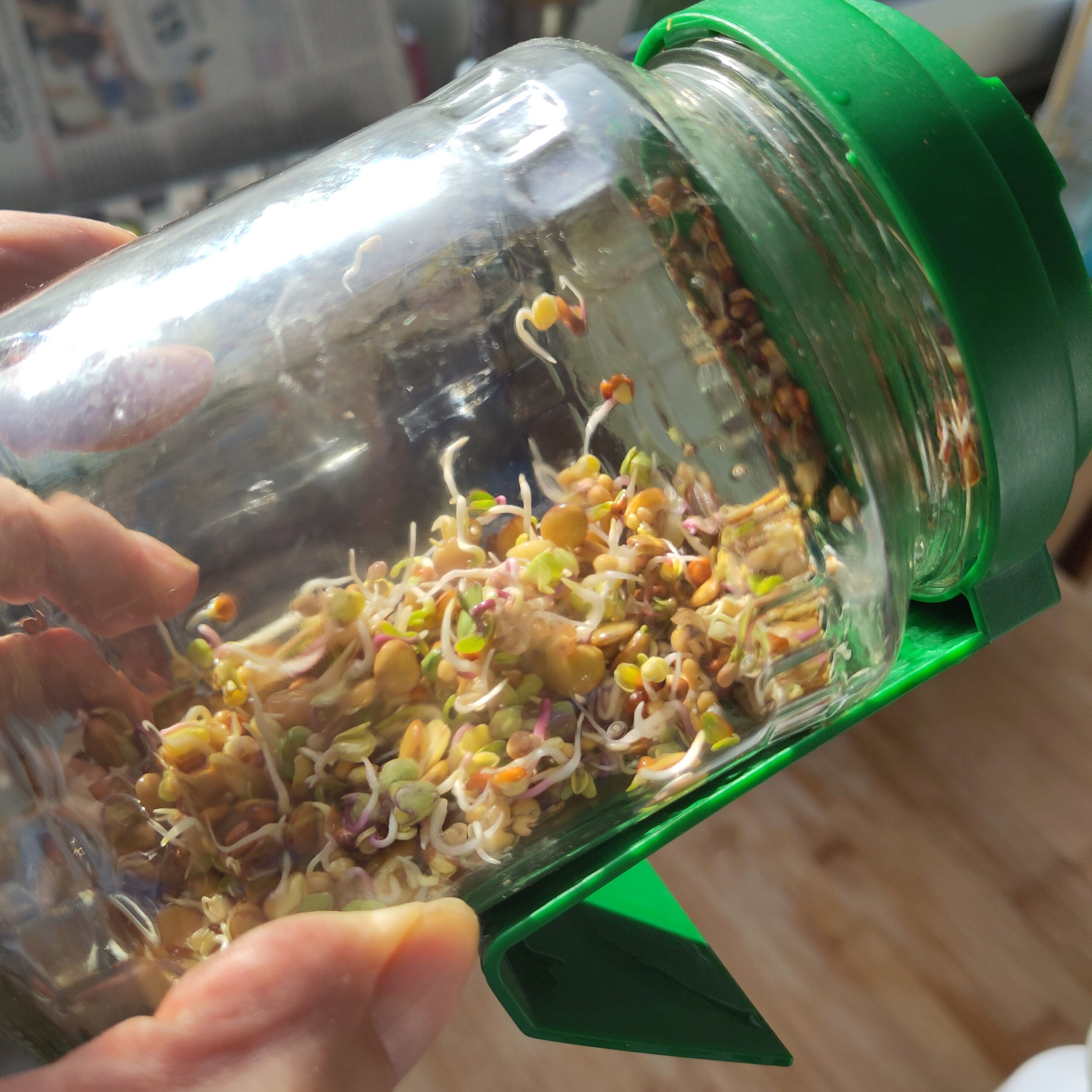 Rinse sprouts twice daily (morning/evening) and drain well. Track growth in the ACJ.