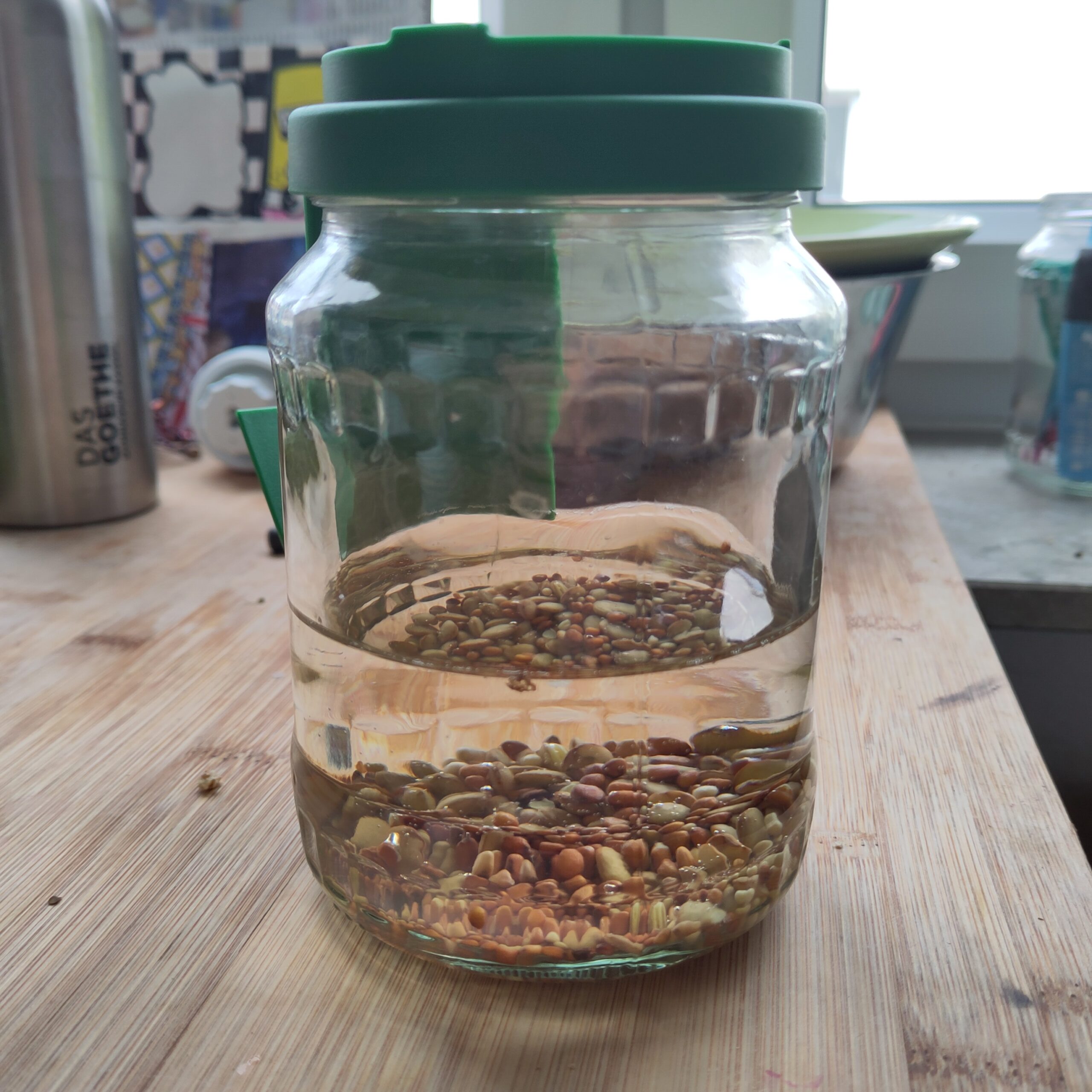 Seed, visible fast growth of a seed in aqua culture, plant nutrients and use cases + a tasty school meal featuring the sprouts of the Jar Farm.